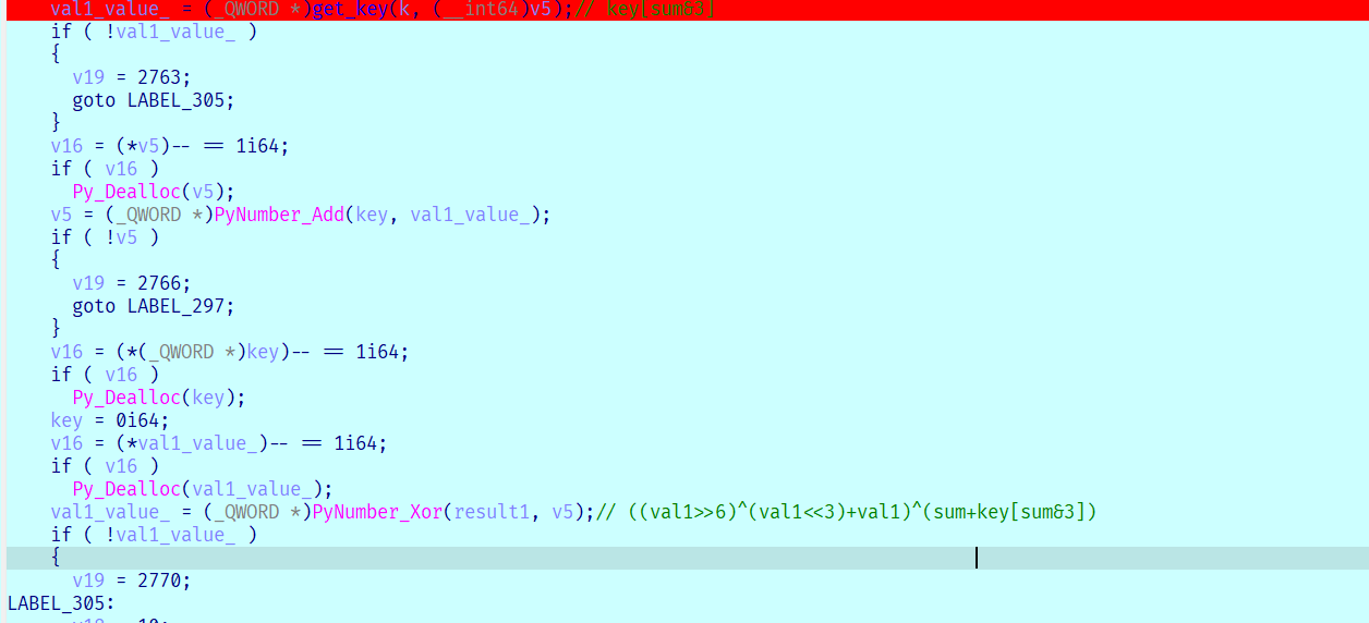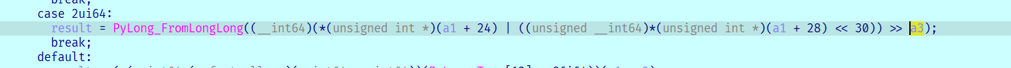 这里的shift没有用到pynumber_shift,而是经过了底层优化编程的C语言的运算符,所以trace不出来,我们只能静态分析
