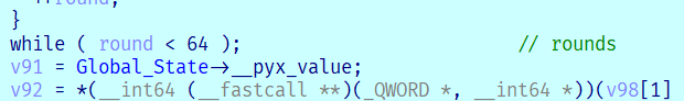 uint32_t v0 = v[0], v1 = v[1], delta = 0x54646454, sum = delta * num_rounds;